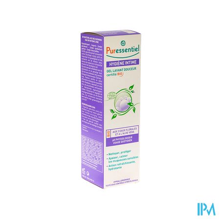 - Getest onder gynaecologische controle. De BIO-gecertificeerde Puressentiel zachte Douchegel reinigt zacht en respecteert de gevoeligheid en het evenwicht van de intieme zone, dankzij zijn zeepvrije en ultrazachte emulsie met fysiologisch pH. Hij werd speciaal ontwikkeld voor de slijmvliezen en de gevoelige huid. Zijn formule combineert drie soorten biologisch bloemenwater (Damasroos, Roomse kamille en salvia officinalis) en biologische essentiële oliën (theeboom, lavendel) en aloë vera, die verzachtende, verfrissende en hydraterende eigenschappen hebben. Hij beschermt dagelijks de onaangenaamheden van de intieme zone. Zijn uitstekende tolerantie werd getest onder gynaecologische controle**.