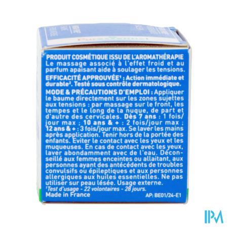 Met een frisse, ontspannende en rustgevende geur zorgt deze balsem voor een echt moment van ontspanning en is dankzij zijn zeer goede tolerantie geschikt voor de gevoelige huid. De formule combineert essentiële oliën, waaronder BIOLOGISCHE pepermunt en BIOLOGISCHE bolvormige eucalyptus, bekend om hun verfrissende eigenschappen. Biologische menthol versterkt dit intense verfrissende effect, voor een snelle en effectieve werking.