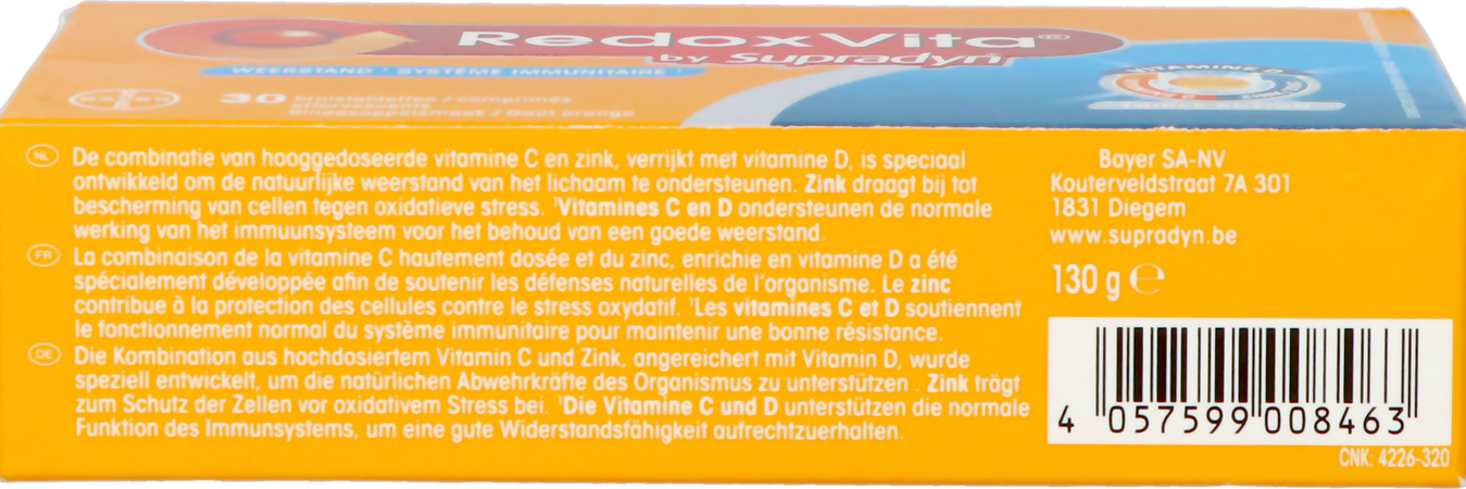Redoxvita Triple Action Bruistabl 30 is een voedingssupplement, verkrijgbaar in uw buurtapotheek of online apotheek. Neem niet meer dan de aanbevolen dagelijkse dosis vermeld op de verpakking. Het vervangt geen gezonde levensstijl en gevarieerde en evenwichtige voeding. Vraag raad aan uw apotheker. Het product altijd buiten het bereik van kinderen houden.