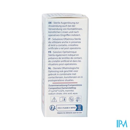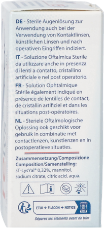 T-LysYal® 0,32%, mannitol (mannito)l, sodium citrate (Natriumcitraat), citric acid (citroenzuur), aqua (Water).