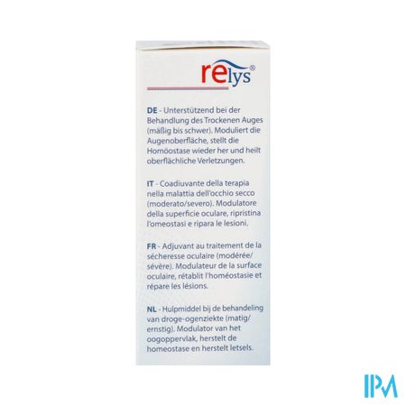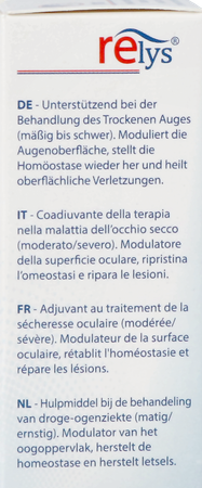 RELYS® is een medisch hulpmiddel dat gebruikt wordt als adjuvant therapie voor de behandeling van de multifactoriële aandoening Droge ogen (DED of Dry-Eye Disease) die door de internationale experts van de wetenschappelijke organisatie "Tear Film and Ocular Surface Society (TFOS)" wordt omschreven als;