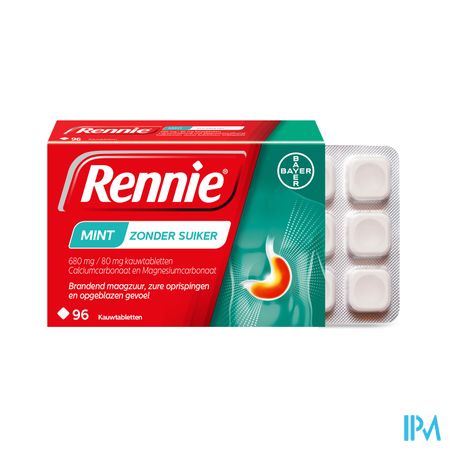 Rennie is een geneesmiddel dat een branderig gevoel aan de maag verlicht. Het wordt