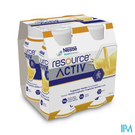 Resource Activ Tropische Vanille 4x200ml is een voedingssupplement, verkrijgbaar in uw buurtapotheek of online apotheek. Neem niet meer dan de aanbevolen dagelijkse dosis vermeld op de verpakking. Het vervangt geen gezonde levensstijl en gevarieerde en evenwichtige voeding. Vraag raad aan uw apotheker. Het product altijd buiten het bereik van kinderen houden.
