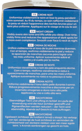 Een verhelderende gezichtscrème met Niacinamide die de teint egaliseert en verkleuring van je teint vermindert terwijl je slaapt.