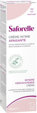 Saforelle Verzachtende Crème werd verrijkt met kliskruid en allantoïne en kalmeert onmiddellijk irritaties en een oncomfortabel gevoel.