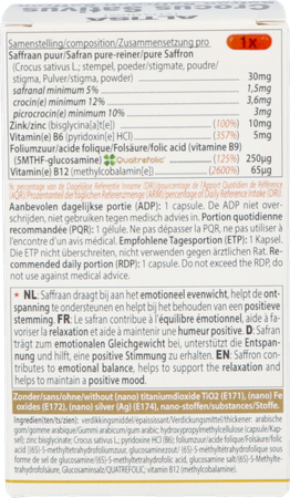 Safran Concentraded Advanced Complex Tabl 60 is een voedingssupplement, verkrijgbaar in uw buurtapotheek of online apotheek. Neem niet meer dan de aanbevolen dagelijkse dosis vermeld op de verpakking. Het vervangt geen gezonde levensstijl en gevarieerde en evenwichtige voeding. Vraag raad aan uw apotheker. Het product altijd buiten het bereik van kinderen houden.