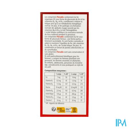 Floradix tabletten bevatten een goed opneembare vorm van ijzer, het ijzer II gluconaat. IIzer draagt bij aan de vermindering van vermoeidheid.De ijzeropname wordt bevorderd door de aanwezigheid van vitamine C. Daarnaast is aan Floradix ijzertabletten foliumzuur toegevoegd.