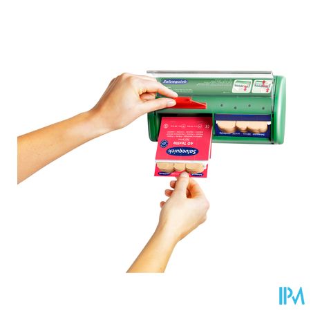Salvequick Pleisterautomaten en pleisters vormen een volledig en gemakkelijk te gebruiken systeem. De pleisters treft u altijd op hun plaats, klaar voor gebruik. De navullingen zitten muurvast waardoor verlies wordt voorkomen. De automaat wordt snel en eenvoudig met behulp van een speciale sleutel gevuld. Er zijn diverse verschillende navullingen geschikt om bij te vullen. Het transparante deksel beschermt tegen stof. Maak de wond schoon, let erop dat deze niet geïnfecteerd is en vervang de pleister iedere dag.