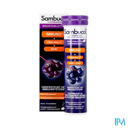 Sambucol Bruistabletten 15 is een voedingssupplement, verkrijgbaar in uw buurtapotheek of online apotheek. Neem niet meer dan de aanbevolen dagelijkse dosis vermeld op de verpakking. Het vervangt geen gezonde levensstijl en gevarieerde en evenwichtige voeding. Vraag raad aan uw apotheker. Het product altijd buiten het bereik van kinderen houden.
