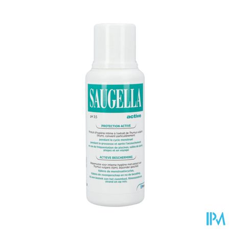 Saugella active is een specifieke wasemulsie voor de intieme hygiëne van de vrouw, met extract van Thymus vulgaris (tijm), een stof met een natuurlijke antibacteriële werking die bescherming biedt: