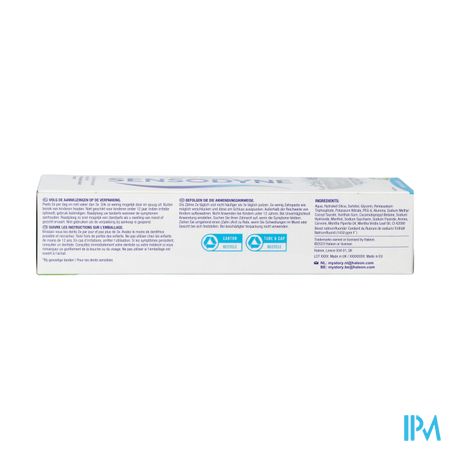 Aqua, gehydrateerd siliciumdioxide, sorbitol, glycerine, pentanatriumtrifosfaat, kaliumnitraat, PEG-6, aluminiumoxide, aroma, natriummethylcacaoyltauraat, cocamidopropyl betaïne, xanthaangom, natriumhydroxide, natriumsacharine, natriumfluoride, CI 42090, CI 19140. Bevat natriumfluoride (1450 ppm F-).