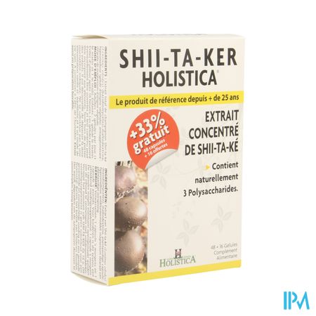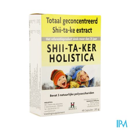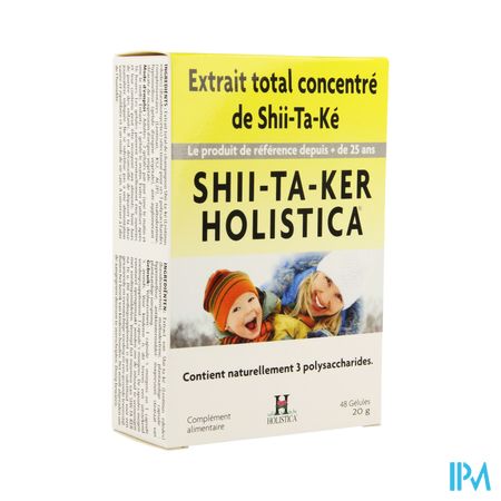 Shii-ta-ker Caps 48 Holistica is een voedingssupplement, verkrijgbaar in uw buurtapotheek of online apotheek. Neem niet meer dan de aanbevolen dagelijkse dosis vermeld op de verpakking. Het vervangt geen gezonde levensstijl en gevarieerde en evenwichtige voeding. Vraag raad aan uw apotheker. Het product altijd buiten het bereik van kinderen houden.