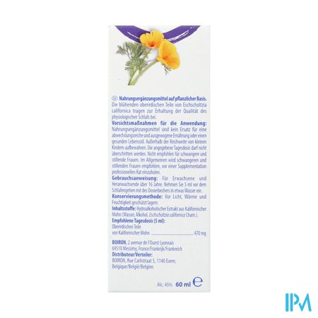 Slaap Eschscholtzia 60ml Boiron is een voedingssupplement, verkrijgbaar in uw buurtapotheek of online apotheek. Neem niet meer dan de aanbevolen dagelijkse dosis vermeld op de verpakking. Het vervangt geen gezonde levensstijl en gevarieerde en evenwichtige voeding. Vraag raad aan uw apotheker. Het product altijd buiten het bereik van kinderen houden.