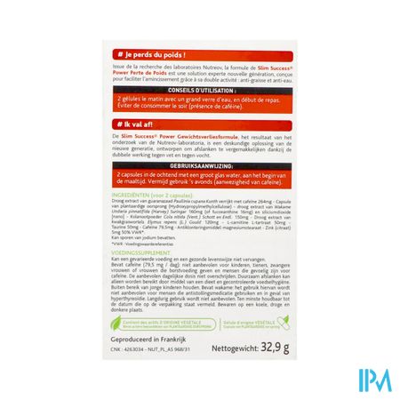 Slim Success Power Perte Poids Caps 60 is een voedingssupplement, verkrijgbaar in uw buurtapotheek of online apotheek. Neem niet meer dan de aanbevolen dagelijkse dosis vermeld op de verpakking. Het vervangt geen gezonde levensstijl en gevarieerde en evenwichtige voeding. Vraag raad aan uw apotheker. Het product altijd buiten het bereik van kinderen houden.