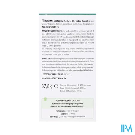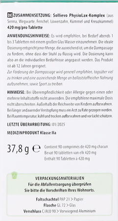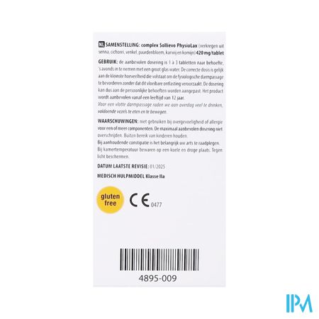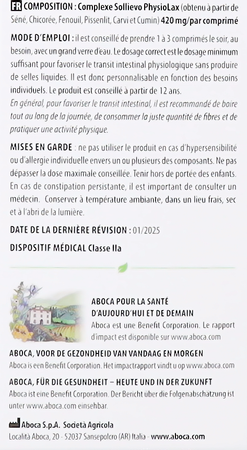 Complex Sollievo Physiolax (uit senna, cichorei, venkel, paardenbloem, karwij en komijn) 420 mg/per tablet