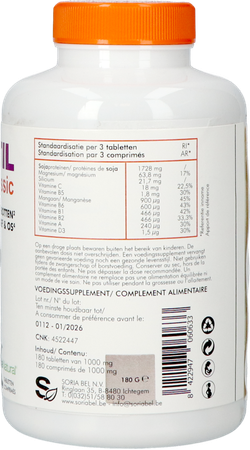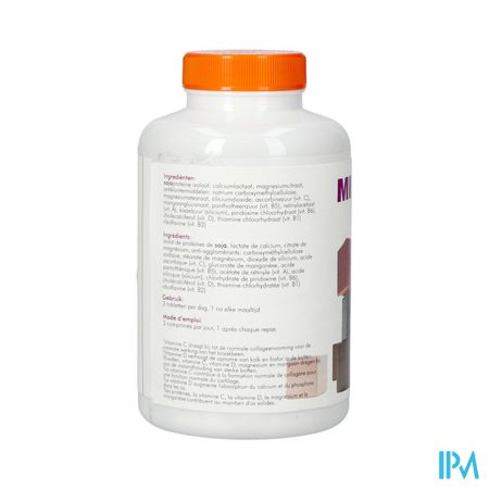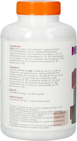 sojaproteïne isolaat, calciumlactaat, magnesiumcitraat, antiklontermiddelen; natrium carboxymethylcelulose; magnesiumstearaat; siliciumdioxide; ascorbinezuur (vit. C), mangaangluconaat, panthotheenzuur (vit. B5), retinylacetaat (vit. A), kiezelzuur (silicium), piridoxine chloorhydraat (vit. B6), cholecalciferol (vit. D), thiamine chloorhydraat (vit. B1) riboflavine (vit. B2)