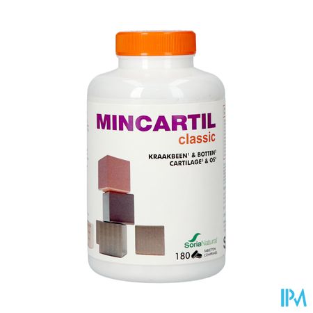 Soria Mincartil Tabl 180 is een voedingssupplement, verkrijgbaar in uw buurtapotheek of online apotheek. Neem niet meer dan de aanbevolen dagelijkse dosis vermeld op de verpakking. Het vervangt geen gezonde levensstijl en gevarieerde en evenwichtige voeding. Vraag raad aan uw apotheker. Het product altijd buiten het bereik van kinderen houden.