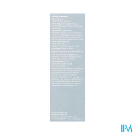 Soria Papaver Rhoeas Klaproos Extr.glyc 50ml is een voedingssupplement, verkrijgbaar in uw buurtapotheek of online apotheek. Neem niet meer dan de aanbevolen dagelijkse dosis vermeld op de verpakking. Het vervangt geen gezonde levensstijl en gevarieerde en evenwichtige voeding. Vraag raad aan uw apotheker. Het product altijd buiten het bereik van kinderen houden.