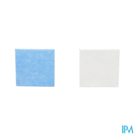 Dikke wattenlaag: 75 % viscose-25 % polyesterLaag die in contact komt met de wonde: een dunne micro geperforeerde copolymeerfolie Blauwe hydrofobe buitenlaag