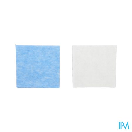 Dikke wattenlaag: 75 % viscose-25 % polyesterLaag die in contact komt met de wonde: een dunne micro geperforeerde copolymeerfolie Blauwe hydrofobe buitenlaag