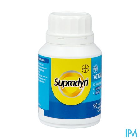 Supradyn Vital 50+ Filmomh Tabl 90 is een voedingssupplement, verkrijgbaar in uw buurtapotheek of online apotheek. Neem niet meer dan de aanbevolen dagelijkse dosis vermeld op de verpakking. Het vervangt geen gezonde levensstijl en gevarieerde en evenwichtige voeding. Vraag raad aan uw apotheker. Het product altijd buiten het bereik van kinderen houden.
