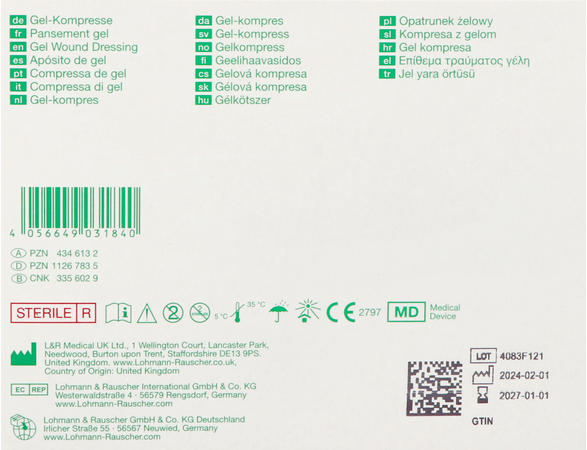 Het vertrouwde Suprasorb® G Gelkompres van L&R krijgt u vanaf nu in een nieuwe kwaliteit. De hydrogel maakt op zachte wijze afzettingen tot op de wondbodem, necrose en weefsel-débris los, en houdt ze vast. Suprasorb® G Gelkompres biedt vochtigheid, werkt pijnstillend en zorgt voor een hoog draagcomfort voor de patiënt. Artsen en verplegend personeel werken graag met het hoogwaardige gelkompres vanwege de eenvoudige applicatie en een gebruiksvriendelijke toepassing.