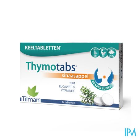 Thymo Tabs Sinaas Zuigtabl 24 is een voedingssupplement, verkrijgbaar in uw buurtapotheek of online apotheek. Neem niet meer dan de aanbevolen dagelijkse dosis vermeld op de verpakking. Het vervangt geen gezonde levensstijl en gevarieerde en evenwichtige voeding. Vraag raad aan uw apotheker. Het product altijd buiten het bereik van kinderen houden.