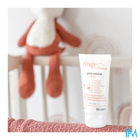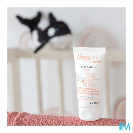 De Tinge for Moms verzachtende tepelcrème bevat geen lanoline en is parfumvrij. De crème helpt gebarsten tepels te behandelen en kloven te voorkomen. De ingrediënten zijn goedgekeurd voor borstvoeding en veilig voor zowel moeder als baby.