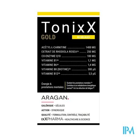 Tonixx Gold Caps 80 Nf is een voedingssupplement, verkrijgbaar in uw buurtapotheek of online apotheek. Neem niet meer dan de aanbevolen dagelijkse dosis vermeld op de verpakking. Het vervangt geen gezonde levensstijl en gevarieerde en evenwichtige voeding. Vraag raad aan uw apotheker. Het product altijd buiten het bereik van kinderen houden.