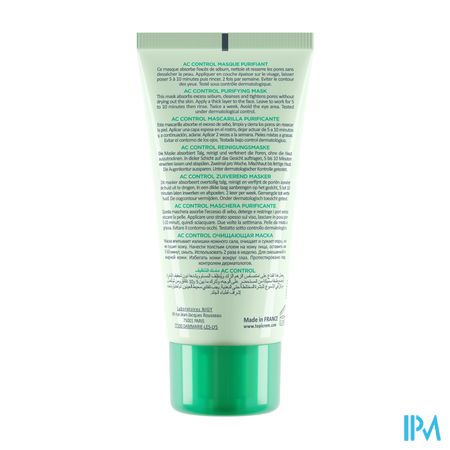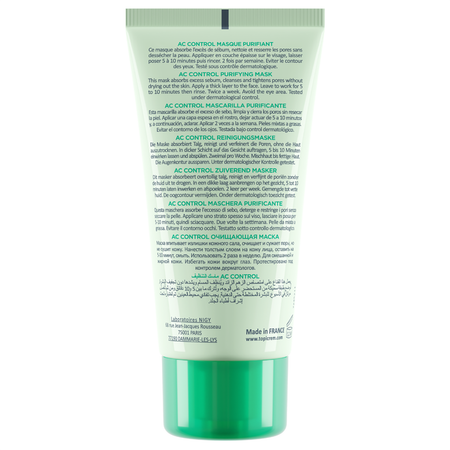 Het AC CONTROL Purifying Face Mask is samengesteld uit een duo van groene en witte klei, absorbeert overtollig talg en vernauwt de poriën om onvolkomenheden en restvlekken te verminderen.