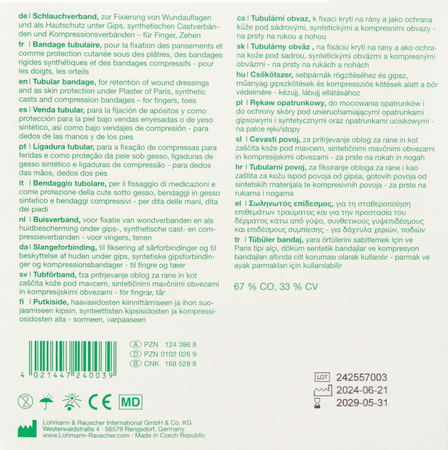 huidbescherming onder gips- en synthetische castverbanden; voor fixatie van wondverband op moeilijke plekken (hoofd, romp, vingers, extremiteiten); ter fixatie van polstermateriaal en wondverbanden