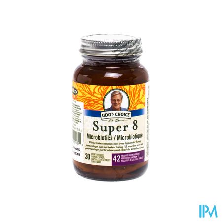 • Udo's Choice Super 8 Microbiotica bevat 8 bacteriestammen met 42 miljard levensvatbare micro-organismen* en is speciaal ontwikkeld voor hoge maar veilige dosis.
