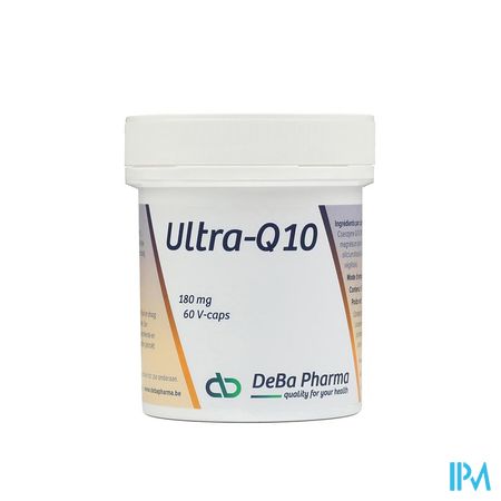 Ultra Q10 V-caps 60x180mg Deba is een voedingssupplement, verkrijgbaar in uw buurtapotheek of online apotheek. Neem niet meer dan de aanbevolen dagelijkse dosis vermeld op de verpakking. Het vervangt geen gezonde levensstijl en gevarieerde en evenwichtige voeding. Vraag raad aan uw apotheker. Het product altijd buiten het bereik van kinderen houden.