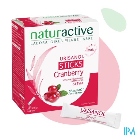 Urisanol is een voedingssupplement op basis van veenbes van Noord-Amerika. De sticks zijn op basis van cranberry (veenbes). De aanwezigheid van proantocyanidinen heeft echte voordelen aangetoond bij het voorkomen van urineweginfecties.*