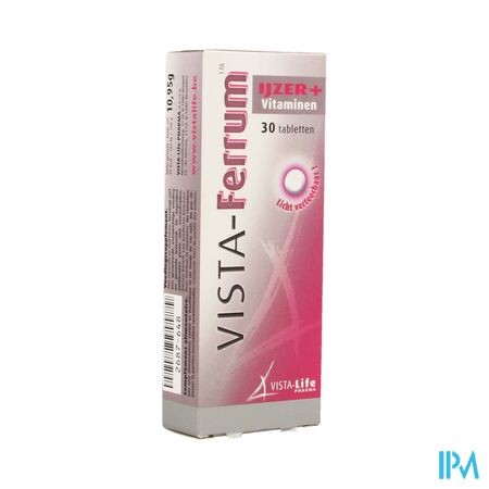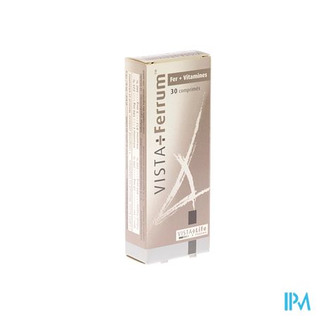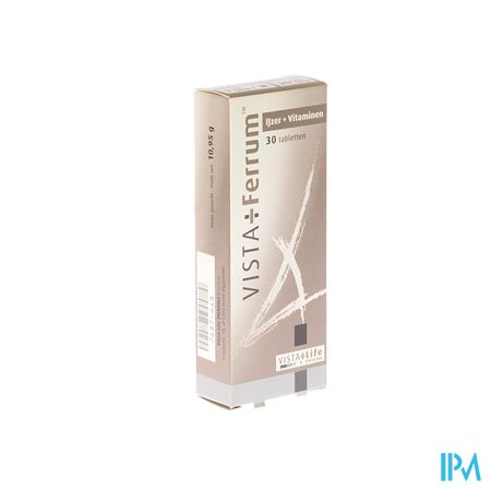 Vista Ferrum Tabl 30 is een voedingssupplement, verkrijgbaar in uw buurtapotheek of online apotheek. Neem niet meer dan de aanbevolen dagelijkse dosis vermeld op de verpakking. Het vervangt geen gezonde levensstijl en gevarieerde en evenwichtige voeding. Vraag raad aan uw apotheker. Het product altijd buiten het bereik van kinderen houden.