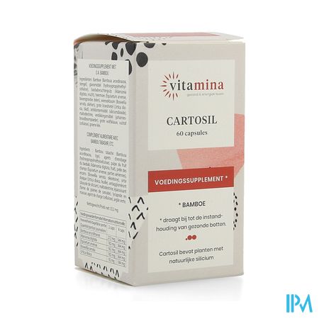 De capsules van Cartosil zijn samengesteld uit de droogextracten van de Aziatische bamboe, de Afrikaanse baobab, heermoes, de grote brandnetel en de wierookboom. Silicium, één van de belangrijkste bestanddelen van het bindweefsel (bot, kraakbeen, vaatwanden, pezen, spieren) wordt door deze plantenextracten op een natuurlijke wijze aangeboden in combinatie met nog andere mineralen zoals calcium en magnesium en heel wat vitamines. Hierdoor wordt silicium heel goed opgenomen in ons lichaam. Daarenboven is silicium heel belangrijk voor de elasticiteit van onze huid, sterke nagels en gezond haar.