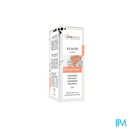 Vita Mina Flacid Pdr 30g is een voedingssupplement, verkrijgbaar in uw buurtapotheek of online apotheek. Neem niet meer dan de aanbevolen dagelijkse dosis vermeld op de verpakking. Het vervangt geen gezonde levensstijl en gevarieerde en evenwichtige voeding. Vraag raad aan uw apotheker. Het product altijd buiten het bereik van kinderen houden.