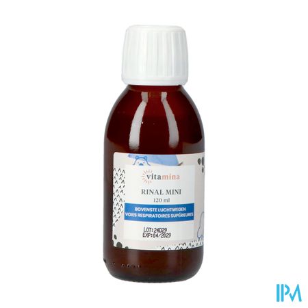 Vita Mina Rinal Mini 120ml is een voedingssupplement, verkrijgbaar in uw buurtapotheek of online apotheek. Neem niet meer dan de aanbevolen dagelijkse dosis vermeld op de verpakking. Het vervangt geen gezonde levensstijl en gevarieerde en evenwichtige voeding. Vraag raad aan uw apotheker. Het product altijd buiten het bereik van kinderen houden.
