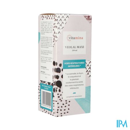 Vita Mina Veolal Maxi 200ml is een voedingssupplement, verkrijgbaar in uw buurtapotheek of online apotheek. Neem niet meer dan de aanbevolen dagelijkse dosis vermeld op de verpakking. Het vervangt geen gezonde levensstijl en gevarieerde en evenwichtige voeding. Vraag raad aan uw apotheker. Het product altijd buiten het bereik van kinderen houden.