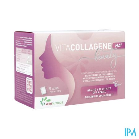 Vitacollagene Ha Beauty Zakje 21 is een voedingssupplement, verkrijgbaar in uw buurtapotheek of online apotheek. Neem niet meer dan de aanbevolen dagelijkse dosis vermeld op de verpakking. Het vervangt geen gezonde levensstijl en gevarieerde en evenwichtige voeding. Vraag raad aan uw apotheker. Het product altijd buiten het bereik van kinderen houden.