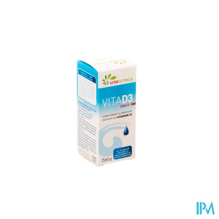 Vitad3 2000ui A Vitanutrics Gutt 15ml is een voedingssupplement, verkrijgbaar in uw buurtapotheek of online apotheek. Neem niet meer dan de aanbevolen dagelijkse dosis vermeld op de verpakking. Het vervangt geen gezonde levensstijl en gevarieerde en evenwichtige voeding. Vraag raad aan uw apotheker. Het product altijd buiten het bereik van kinderen houden.