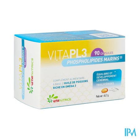 Vitapl3 Phospholipides Marins Caps 90 is een voedingssupplement, verkrijgbaar in uw buurtapotheek of online apotheek. Neem niet meer dan de aanbevolen dagelijkse dosis vermeld op de verpakking. Het vervangt geen gezonde levensstijl en gevarieerde en evenwichtige voeding. Vraag raad aan uw apotheker. Het product altijd buiten het bereik van kinderen houden.