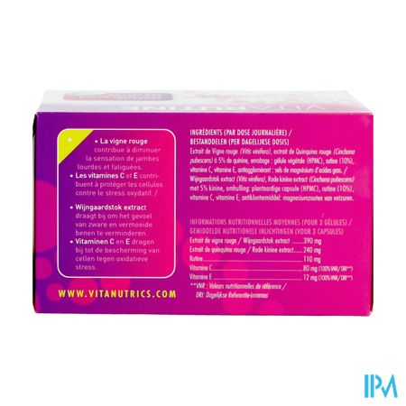 Wijngaardstok extract (Vitis vinifera), Rode kinine extract (Cinchona pubescens) met 5% kinine, omhulling: plantaardige capsule (HPMC), rutine (10%), vitamine C, vitamine E, antiklontermiddel: magnesiumzouten van vetzuren.