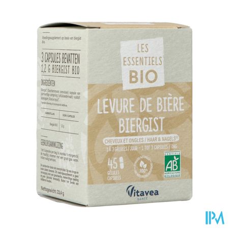 Vitavea Biergist Bio Caps 45 is een voedingssupplement, verkrijgbaar in uw buurtapotheek of online apotheek. Neem niet meer dan de aanbevolen dagelijkse dosis vermeld op de verpakking. Het vervangt geen gezonde levensstijl en gevarieerde en evenwichtige voeding. Vraag raad aan uw apotheker. Het product altijd buiten het bereik van kinderen houden.