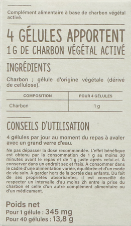 Vanwege zijn absorberende eigenschappen is het raadzaam om een interval van minstens 2 uur te respecteren tussen de inname van de houtskool en die van een ander voedingssupplement of medicijn.