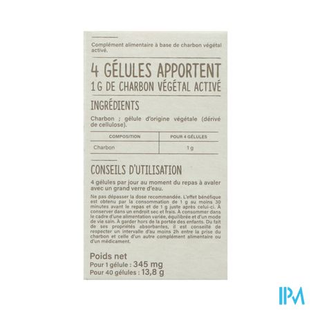 Samenstelling per 4 capsules: Steenkool 1000 mg; capsule van plantaardige oorsprong (afgeleid van cellulose).