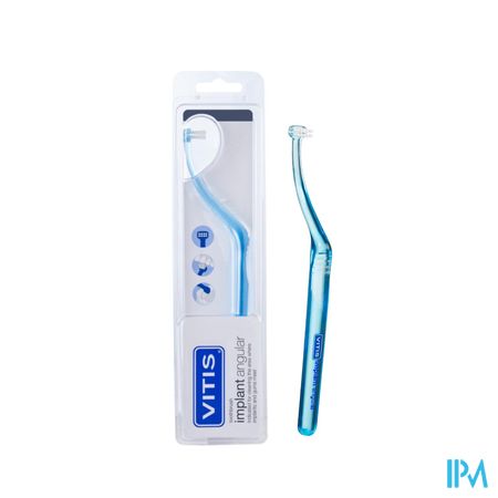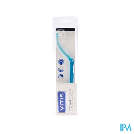 VITIS Implant Angular tandenborstel is zo gebogen dat het poetsen en reinigen van de implantaten aan de binnenzijde van het gebit gemakkelijk wordt. De monotip borstelkop is voorzien van zachte en afgeronde Tynex® borstelharen. Hierdoor wordt het kwetsbare tandvlees rond een implantaat niet beschadigd. Zo kunnen de implantaten goed gereinigd worden.
