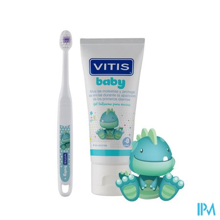 Breng een kleine hoeveelheid (ter grootte van een erwt) VITIS baby gel-balsem voor het tandvlees aan op het siliconen vingerborsteltje, op de tandenborstel of op de vinger en masseer het tandvlees van de baby voorzichtig om ongemak bij het doorbreken van de tanden te helpen verlichten.