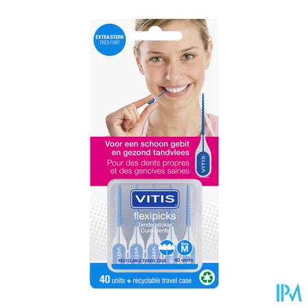 VITIS Flexipicks zijn rubberen tandenstokers om gemakkelijk tandplaque en voedselresten tussen de tanden en kiezen te verwijderen. De Flexipicks zijn extra sterk, maar zeer comfortabel in gebruik en zacht voor tanden en tandvlees. De flexipicks zijn verpakt in een handige travelcase die het mogelijk maakt altijd een interdentaal hulpmiddel op zak te hebben.