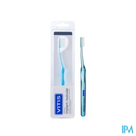 VITIS Implant Sulcular is een speciale implantaatborstel die zeer geschikt is voor de dagelijkse reiniging en verzorging van implantaten en de tandvleesrand. De zachte Tynex® borstelharen zijn in 2 smalle rijen op de borstelkop geplaatst voor het effectief reinigen van de tandvleesrand. Gebruik tweemaal daags naast een normale tandenborstel.